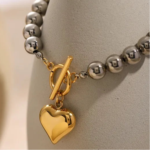 A modern classic, the Amora Bead Bracelet features polished silver-toned spheres strung together with a bold, gold heart charm at the center. The mixed-metal design adds contrast and charm, making it a playful yet elegant piece for everyday wear or gifting.