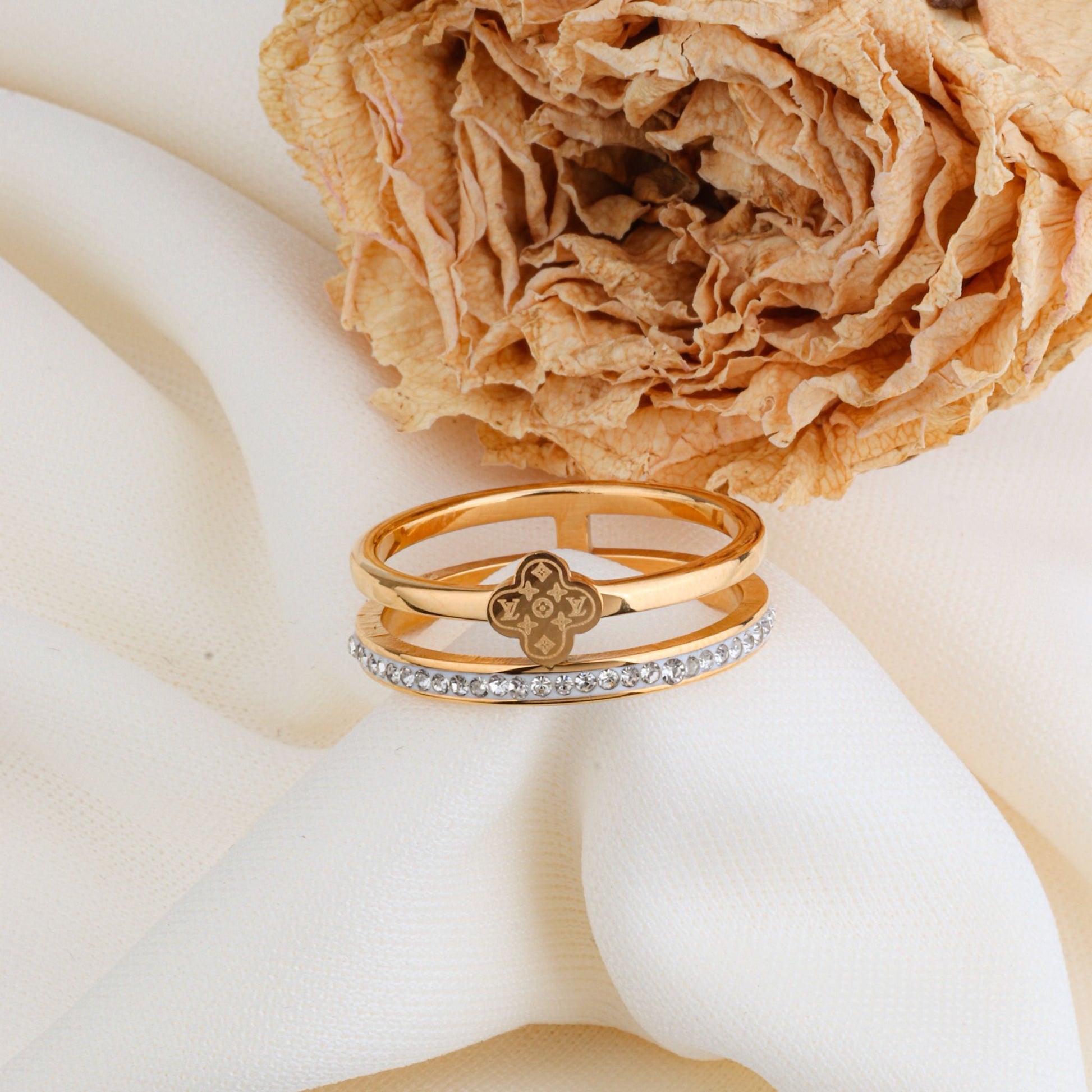 A refined gold ring with a graceful open-line design, sparkling accents, and a signature LV-detailed centerpiece — timeless elegance in every detail.
